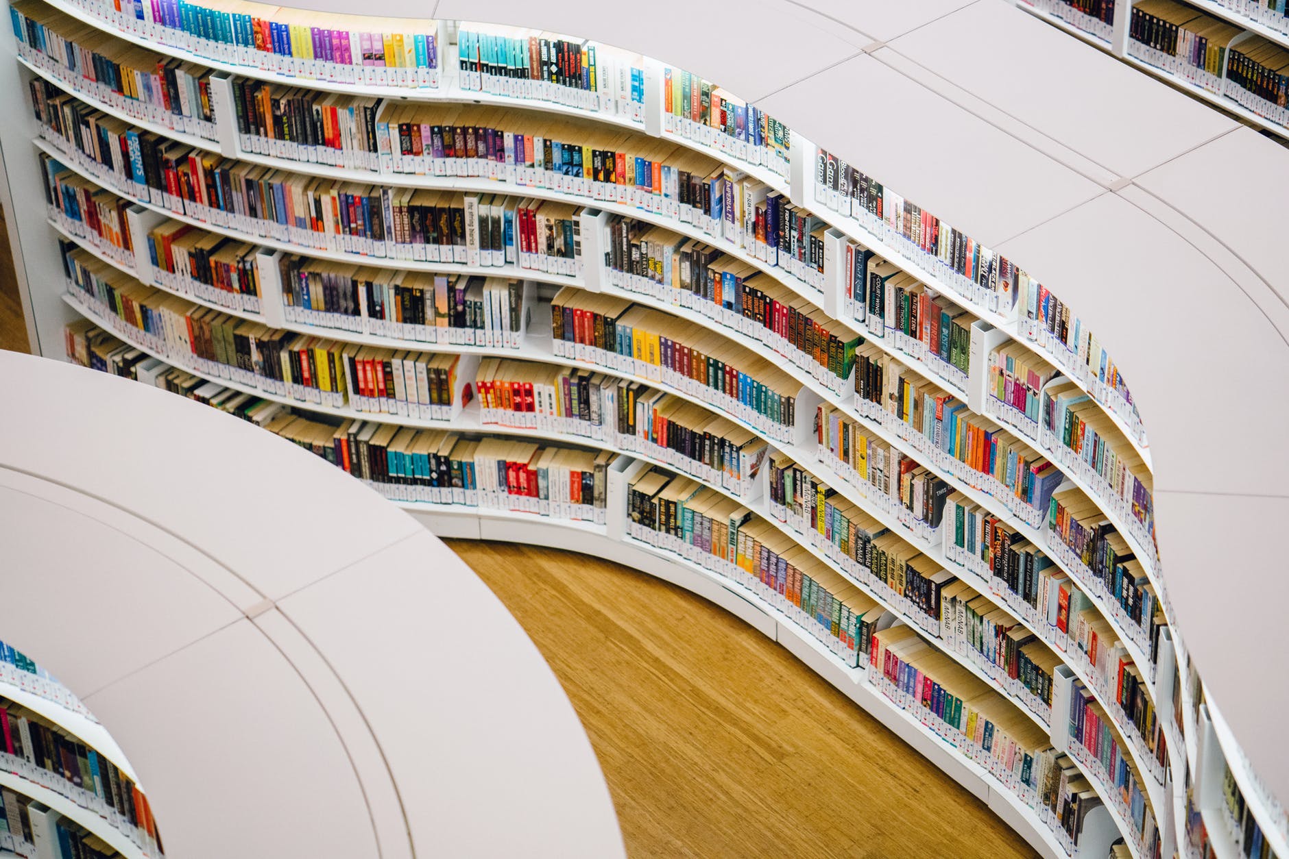 white wooden bookshelves