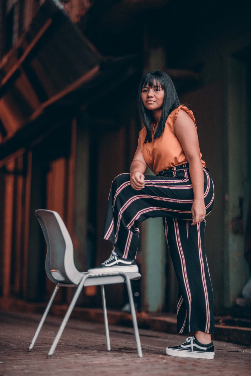 woman posing by chair