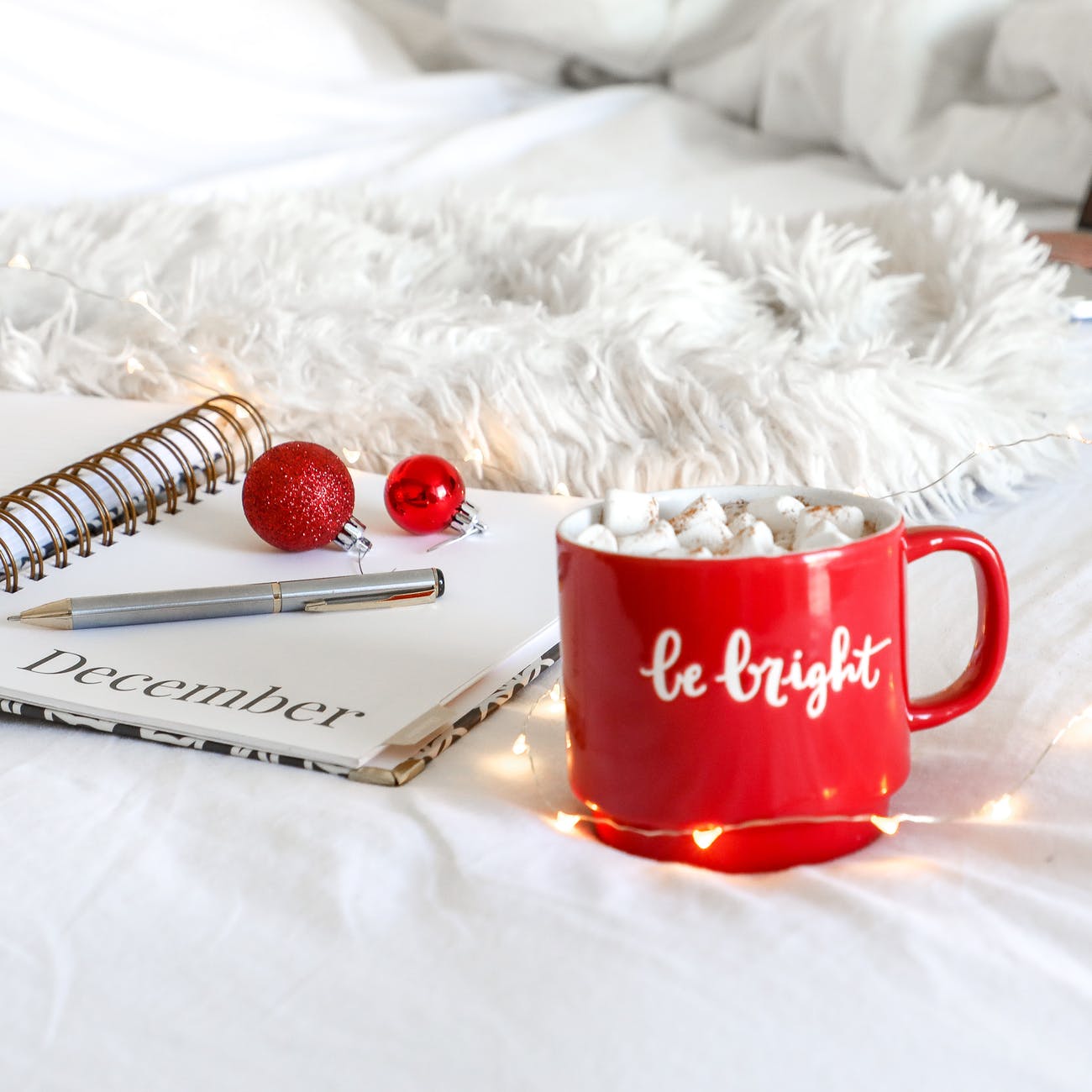 red ceramic mug on white mat beside notebook Published December 10, 2018 at 1300 × 1300 Photo by Anna Sommer on Pexels.com