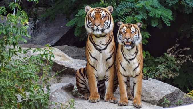 two orange tigers sitting beside each other Published December 6, 2018 at 1880 × 1057 Photo by Thomas B. on Pexels.com